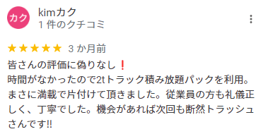 トラッシュアップは現在、外部クチコミや自社アンケートにおいて非常に高い評価をいただいております。