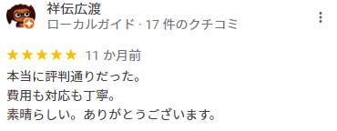 改ざんや水増しができず信頼性の高いレビューであるGoogleクチコミにて、
